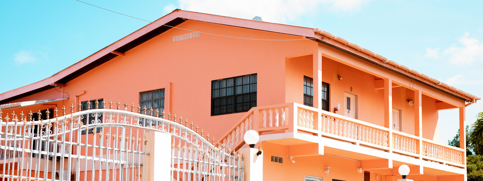 Nestled in the heart of Tobago, this charming two-story guest house stands as a beacon of tropical warmth, its vibrant peach exterior a cheerful welcome to weary travelers. This quaint Caribbean retreat boasts cozy rooms and apartments, each a unique haven of nostalgia and comfort. Just a stone's throw from island essentials - a mere 10-minute drive from both the sun-kissed beaches and the airport, 15 minutes from the bustling port, and a convenient 5-minute jaunt to the nearest supermarket - the property offers the perfect blend of seclusion and accessibility.